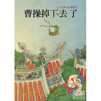 忽然吹來一陣大風,唉呀!寺廟屋頂上的剪黏偶曹操掉下去啦!誰來救曹操?