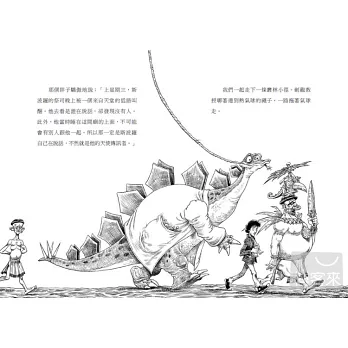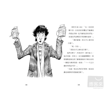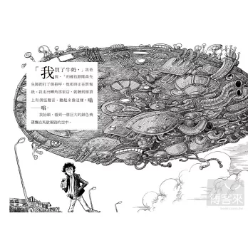 就在我們等到快餓死的時候,爸爸終於回來了!但是,他不只真的記得帶了一瓶牛奶回來,還帶回來一個超級誇張的冒險故事——被外星人綁架、遇到海盜、被恐龍科學家帶走、坐上時空機、遇見吸血鬼家族……那他到底是怎麼回到家的?