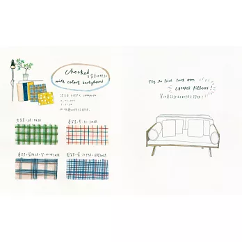 為了把挫折感減到最低,她從最簡單、生活中最常見的圓點、線條、格紋開始教大家畫畫,搭配她去希臘訪友、去深圳工作、去日本旅行時,得到的靈感。在她的巧思下,圓點變成橄欖、再畫成桃子,最後又成了腮紅。橄欖可以畫滿做成手工皂包裝紙,點點跟杯子最搭,線條原來畫上小花盆,超可愛。日本是格紋天堂,各種風格到處可見,何不來試試自畫桌巾。