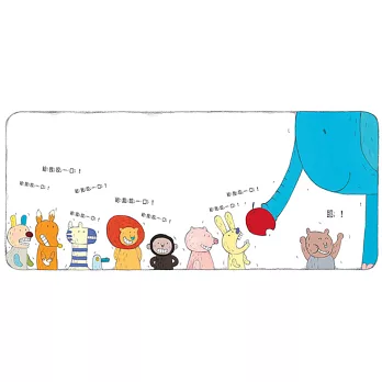 終於,好心的大象有一顆蘋果願意分享,不過,要排隊,