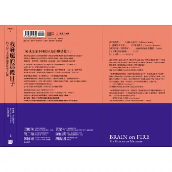 卡哈蘭用鷹眼般的精確,誠實得殘忍地寫下這本書,報導自己生命中最悲慘、最難以想像的經歷:莫名發瘋,無法掌控身體,連自己是誰都想不起來。所幸後來因某個醫生全心投入,加上愛她的家人和男朋友悉心守護,她活了下來,而且更加聰慧、堅強,生氣勃勃。這本精彩的書讀來令人欲罷不能。——米拉‧巴爾托克(Mira Bartok)「美國國家書評獎」最佳自傳《記憶之宮》的作者