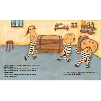 圖畫書最拿手的本事就是用圖像來說故事,一個簡單的故事,透過幽默有趣的圖像呈現,整個就豐富起來了。三個小偷利用自己的特徵,以顏料把自己偽裝成另一種動物,順利離開監獄,過程中沒有打鬥、沒有爭辯,但是,因為偽裝得太投入,他們變成那隻動物,順利逃獄卻回不去以前當人的自由,最後,牠們被送進動物園裡,繼續著想要得到自由的美夢。好有趣的故事,可以引發孩子很多想法,讓大家在輕鬆閱讀中動動腦筋,天馬行空!——兒童文學工作者 蔡淑媖