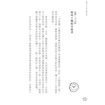 吃下料理,也就吞嚥了關懷,她視煮飯為再忙碌也不能忽略的重要事,而如是看待日子——「工作結束約莫晚上九點半,走出建築物,雨停了,燈火在水氣中明明滅滅;還沒吃飯、準備回家,我好像又回到剛北上時『深夜女子下班烹煮』的狀態了呢。這沒什麼不好,把自己安上齒輪,一格格轉動,確實前進,並在與名為社會生活的巨大機械絞動的同時得到扎實的樂趣。」