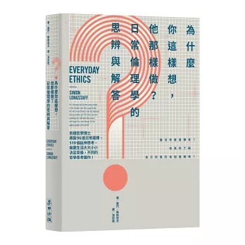 ◎ 本書討論沒有標準答案,只藉由漸進式的提問將現代人日常生活中隱含的倫理原則及現實衝突一一揭開,讓讀者進一步反思,在做各種決定時,內心秉持了哪些連自己都渾然不覺的衝突與價值判斷,又該如何進一步做出最好的選擇。