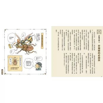 我從小就喜歡昆蟲,小時候常常蹲坐在公園花圃,看昆蟲在做什麼。幼稚園時,把蜜蜂當成蝴蝶放在手上,結果被叮一口,痛得大哭。當時印象最深的不是「痛」,而是蜜蜂螫人後,自己也會死掉。原來,蜜蜂的螫針與內臟相連,用刺螫人後,自己也會付出生命的代價。作者奧本大三郎和畫家山下浩平合作,將各門各派昆蟲的存活密技、絕招,一一整理、描繪出來。我覺得這套書就像自然觀察的「武功祕笈」,看完後有種打通任督二脈,剎時增加數十年功力的滿足感。兒子于哲看到書稿後,也被圖文吸引,立刻進入「埋首苦讀」的狀態。他還不時停下來思考或向我發問,父子倆展開各種天馬行空的有趣討論。如果你對昆蟲有興趣,或是你的孩子跟我一樣熱愛觀察昆蟲,我衷心的推薦這套「法布爾老師的昆蟲教室 」,絕對值得你一讀再讀,和我以及法布爾老師一樣,從自然和昆蟲身上得到許多快樂、滿足。──黃仕傑(科普書籍作者/自然觀察家)