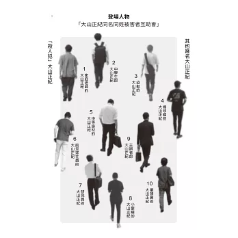 那些被殺人犯奪去名字的大山正紀們,為了找出犯人,創立了「大山正紀同名同姓被害人互助會」。有家教老師的大山正紀、中學生的大山正紀、染髮的大山正紀、前足球社員的大山正紀、研究員的大山正紀、小眼睛的大山正紀、主辦者的大山正紀……而每一個大山正紀,都隱藏著各自的祕密。