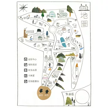 呼應故事的氛圍和情境,從前蝴蝶頁的動物園地圖起,就運用拼貼與複合媒材,在流暢寫意的線條與色塊間經營出多層次的豐富畫面,讓讀者跟著主角的視野、主角的觀察、主角的心情,不管是上下頁的對照,或是前後翻頁間的搜尋,都能在圖像間找到重要的關聯、有趣的線索;也烘托出從懸疑神祕(還有小小的驚悚)到善意溫馨的意料之外的故事轉折。書末還有主角洪小茂充滿童心與童趣的「動物園圖畫筆記」。