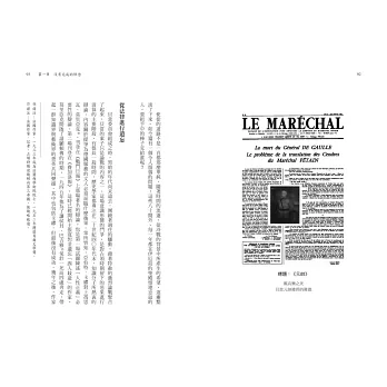 作者運用豐富多元的素材,以淵博精湛的學識及深厚的文化底蘊,具體且靈巧地呈現出法國社會對維琪時代的共同記憶。這是一本對於任何想要深入瞭解維琪法國歷史,或是對集體記憶研究有興趣的讀者,都絕不能錯過的經典之作。──郭容吟/輔仁大學歷史學教授