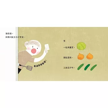 臺文版寶寶書,分別以「水果」、「蔬菜」為題,透過愉悅幸福的故事,學習臺灣家庭常見蔬果之臺語。輕快的文句、具設計感又可愛的圖像,童趣的情節經營和專業的臺文審訂,相當適合0-3歲嬰幼兒閱讀。耳目一新的創作,為共讀增添美學新選擇,並帶動本土語言學習向下扎根,鼓勵大人、小孩都能開始勇敢講臺語,而且享受講臺語。