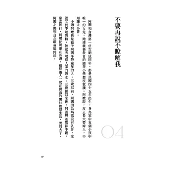 繁榮社會有兩種光芒,一種頌揚努力與成功,展示無塵明亮的進步;另一種則隱沒在挫折與苦難中,積滿沙塵,卻仍強韌常駐。這是由沙子堆砌成的書,採集自一群長久被汙名的茶室女性,以及她們的陪伴者。閱讀時請記得呼吸,祝福讀者最終穿越沙子的磨難與珍珠的光澤,與真實、與家園的姊妹們同在。—朱剛勇(人生百味共同創辦人)