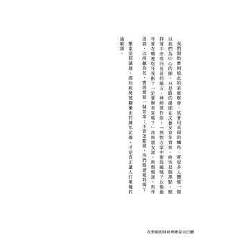 這位奇女子的韌性,早在她的創作之中顯現,這次在書裡更是一覽無遺,但感受到更多的是她分享了深層柔軟的自己。經過反芻過後的文章,常常看著看著就笑出聲,同時也會無意間跟著走心、默默泛淚……──洪佩瑜/歌者