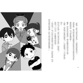 ■ 閱讀課程教學,筆者常常提供一些條件後,由學生預測、推論文章後續的發展。用意在鼓勵學生先形成自己觀點,形構和文章內容對話的基礎。《放學後的機智偵探社》系列故事發展,將推理元素一一揭開後,四年級的天馬同學總會向讀者提問「我要向讀者提出挑戰。關於『……事件』,查清真相所需的線索都已齊全。是誰,為了什麼目的」,才發生這樣的事件……呢?「請讀者們務必解開謎團。這是我向讀者下的挑戰書。祝你們推理順利。」同樣鼓勵讀者先推論故事發展,有異曲同工之妙。另外,「機智偵探社」成員為三位四年級同學,由同學間互相協助解決推理問題,指導教師並不涉入。成人角色的弱化,同儕間的合作學習,貼近少年生活逐漸重視同儕關係的心理發展,也讓兒少讀者容易投射成為小說主要人物,隨著推理的行進,更具挑戰力和自信心。──教育部閱讀推手 黃愛真