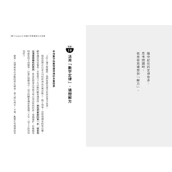 你會看到厲害的工作者對數字的敏感度、解決問題的邏輯思考更為強大。如果你想學會用數字思考工作與生活,我強烈推薦本書。──彭建文(品碩創新管理顧問有限公司創辦人、《思維的良率》和《思維的製程》作者 )