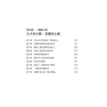 橫跨數學、物理、化學、生物、天文、醫學、考古等領域,科學發展史與科學家們的傳記。