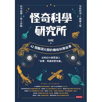 42個腦洞大開的趣味科學故事,解答了眾說紛紜的「科學謎團」、揭露了既危險又離奇的「驚人實驗」、細數了改變文明的「里程時刻」,還介紹了科學史上啟迪人心的「關鍵人物」。不僅串起了科學發展的主要脈絡,跨領域的豐富知識,蘊藏了教室之外的幽默風趣,同時滿足學習科學的好奇心。