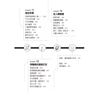 全書共有13章從不同面向探討AI如何改變工作、民主、經濟、道德與日常生活,不僅說明技術機制,也強調人類如何因應與選擇,是一本兼顧「科技理解」與「社會批判」的AI通識書。