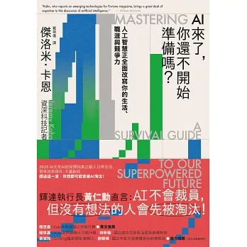 在這本聰明、深思熟慮且啟發性的書中,傑洛米・卡恩揭示了AI將如何影響我們生活的無數方式,無論是好是壞;重要的是,他還提供馴服其陰暗面的方法。《AI來了,你還不開始準備嗎?》一書可謂是傑作。—喬・諾切拉(Joe Nocera),《所有魔鬼都在這裡》(All the Devils Are Here)和《大失敗》(The Big Fail)的共同作者