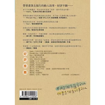 除了具有畫面感的動人文字,更結合了旅行途中所拍攝的真實照片,以及為每一位朋友,畫下了一幅幅的肖像畫,搭配感動的故事,更能使你我觸及其中的溫度。