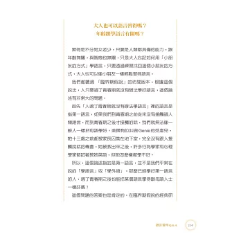 ★他一直以為自己的英語不錯,得過台大的英文拼字比賽冠軍(甚至擊敗了英文母語人士)、考試檢測都能過關斬將,但後來才體悟到:自己被超群的考試成績矇蔽,語言不是把單字用文法串起來就行。