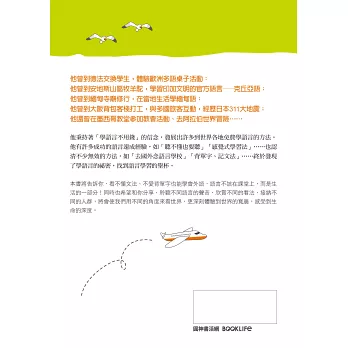 ★他在全世界走透透的過程中,學會把外語融入日常生活,和自己的興趣、課業或工作合一,更學會了如何與外國人交朋友、如何跨越人我之間的藩籬誠摯溝通。