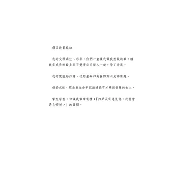 ★★★★★喜歡讀他的文字,好像溜滑梯溫柔的彎來轉去,隱晦卻又直白,還有種親切感。希望買了書之後,以後可以告訴孩子:「這是你媽以前最喜歡的書。」(潛水小粉sy7_11)