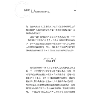 本書解答了「知識如何成為力量」的重要課題,告訴讀者如何以我們擁有的知識為基礎,在商業思維的POEM法則之下,進型內容創作與知識變現。