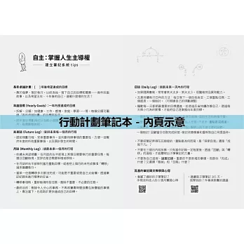 **行動計劃筆記本:尺寸14.8*21cm,騎馬釘。內頁108頁,包含5mm點點筆記頁105頁**
