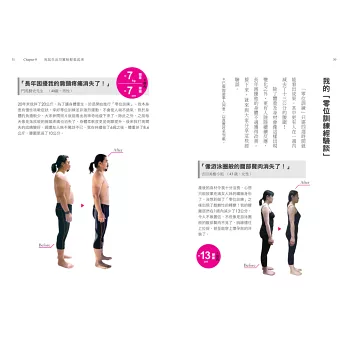 「之前我曾經用激烈的無醣減肥法瘦了15公斤,但沒多久就復胖了,體重還比以前更重。經過4週「零位訓練」後,我的腰圍和臀部都戲劇性地變小了,身材和減了15公斤的時候差不多,還穿得下最瘦時期買的洋裝。」