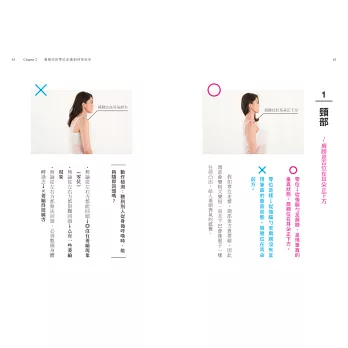 ‧以大圖標示出身體的「零位」,每天對照確認各部位是否有回歸正確的位置。