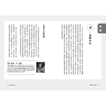 ◎以【夢與潛意識】、【永恆少年】、【陰影】、【個體化】四大篇章,釐清【童年、青少年、中年、以及老年】這四個人生階段的心靈任務。