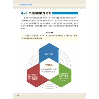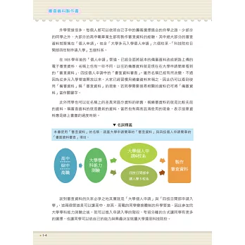 ●作者以多年實際輔佐學生製作審查資料的經驗出發,關注大部分的考生,而非集中於頂尖學生的表現,更具有涵蓋性和使用的廣度。