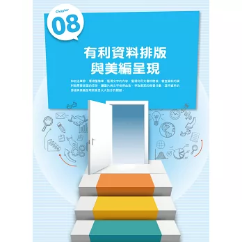 ●以簡單的方式讓學生們依據書中步驟,輔以簡單而又有條理的範例,就算是不會寫文章的學生也可以凸顯出自己的優勢。