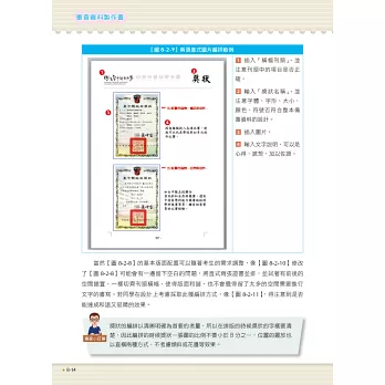 ●運用軟體,進行文章內容的編排,並將圖檔進行美編與修飾,讓您的「審查資料」圖文並茂,極具個人風格。