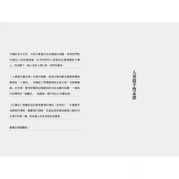 蔡宇哲|在各式各樣的三國歷史改編裡,我最喜歡的是從有根據的歷史經典中擷取,經過腦補後展現出來的故事。這就很像廚師的工作,從同樣的食材中,透過創意與巧思讓它們變成令人驚豔的菜色,而這本《非普通三國》就是這麼一道菜。