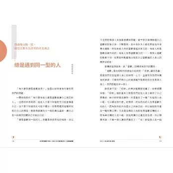 戀愛關係總是難以推展、維持不好,並非因為對方不是所謂「對的人」,往往是因為你和自己的關係出了問題,若一味忽略漠視,逃避的反作用力就會以其它形式反覆出現在關係之中——沒辦法溝通、很難分手、沒安全感、容易自責、無法動心……只要你覺得自己不值得,你就會委屈自己,別人自然也不會珍惜你。