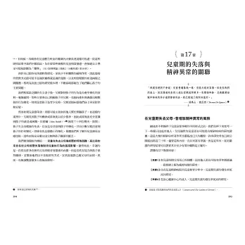 依戀理論創始者──約翰・鮑比的革命性經典著作《依戀理論三部曲》,探索幼兒與父母的依附關係,從最開始與依附對象的緊密聯結,再到與依附對象分離時的焦慮,最後看見當孩子失去依附對象時,他所展現的行為反應以及對後續心理健康的嚴重影響。我們在鮑比的研究當中看見的不只是影響近代心理學最著名的理論,最終,我們從童年的經歷看見自己為何陷入焦慮的泥沼、無法脫離。因為無論是與依附對象分離、失去依附對象,抑或是遭受被拋棄的威脅經歷……最終,我們都將面臨童年時期所形成的不安全依附影響。