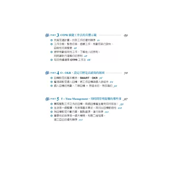 有效運用OTPR,一個月後你就能感受到明顯的改變,三個月後你會發現自己有長足的進步,只要半年時間你在工作上的主控權會愈來愈大,能創造的價值也相對具體,此時,你就會真正進入高績效人士的行列中!