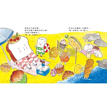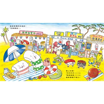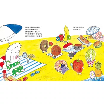巧妙的安排了蒟蒻先生當救生員,那三角形的形狀更是加深了劇情的豐富度,跟著故事到最後,發現所有的食物曬完日光浴後,又成了更美味的樣子了啊~
