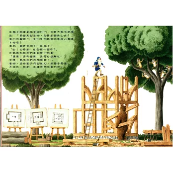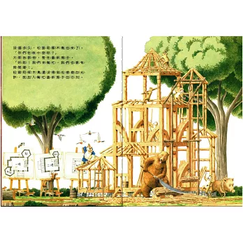 很有趣的故事,可以讓孩子了解建房子的步驟和內部的空間圖,雖是繪本 卻能讓孩子對空間的概念更加清楚,他的「建築」插畫十分具說服力,在這本書中,我們可以看到動物們以木材做成骨架,一步步的蓋出理想的家的情形,細緻的插畫,沒有專業建築師的功力,是不容易完成的。而在青山邦彥畫筆下的動物們,個個都表情豐富、栩栩如生。