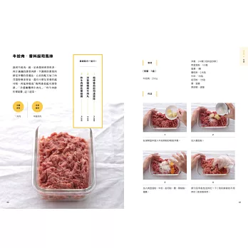 .香料風味牛絞肉→起司焗烤漢堡排、洋蔥橄欖烤牛肉丸子、炸牛肉餅佐蕈菇醬