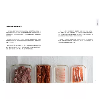採買食材回家後的當下,只需花一些時間預先處理,做好「半調理醃漬」再分裝,就算買多了食材,也可先醃漬後放冷凍庫。等到要烹調的當日,醃漬好的肉品或海鮮就可直接下鍋,不論煎、炒、蒸、炸、烤都好吃。