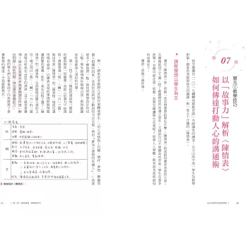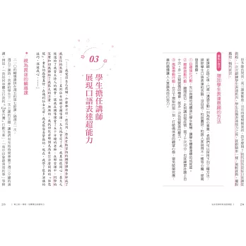 這本書,將為你揭開教學的秘訣,讓你知道、也讓你學會,仙女老師的教學設計,以及背後的秘密。……這本書還會跟大家分享,仙女老師是怎麼帶領著一群高中生?怎麼做好班級經營?讓整個班級變成一個學習團隊!──頂尖上市公司簡報教練&講師教練 王永福
