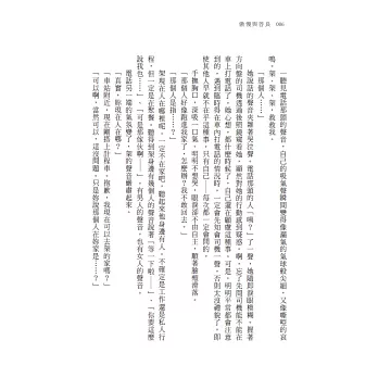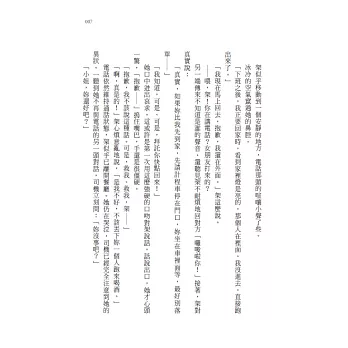 ■這本小說是「碎」的。一個失蹤案件、一對無法下定決心的情侶。作者刻意選擇了只描寫那些片面的、個人視角的看法和印象,瑣碎的對話、不完整的「事實」,卻深刻探討了現代社會的人際關係。遲鈍的靈魂,莫名其妙的分離,竟讓兩個人在自省的同時理解對方。(28歲男性,旅美研究生Tony)