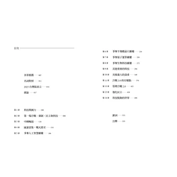 從人工智慧的軍事應用到生物科技的雙刃效應,作者塔卡奇深入剖析台灣與美國在這場全球競逐中的戰略意義,為自由世界提供應對專制威脅的行動藍圖,並以清晰的洞見與精準的策略,呈現台灣與美國在冷戰2.0中不可或缺的合作關係,為民主國家指引勝利方向。