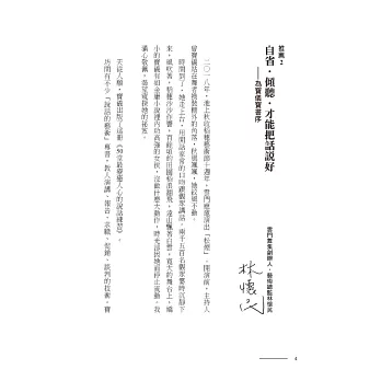 本書是曾寶儀二十年來從各種工作經驗中,一點一滴努力探索,挖掘與思考什麼是「說話溝通」的細膩分享。
