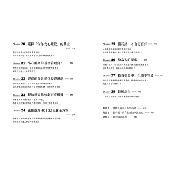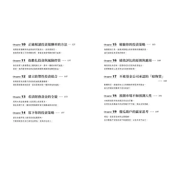 「這本書讓人看清楚投資的重點,體認市場難以打敗的事實,以及如何抓對投資的方向。」──綠角,暢銷財經作家、指數化投資專家