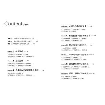 如今市場已經出現巨大變化,為散戶帶來無法克服的問題。這本書的目的,是希望每一位讀者都能把輸家遊戲變成贏家遊戲,也讓每一位明智的投資人,都能成為長期贏家。