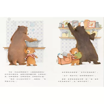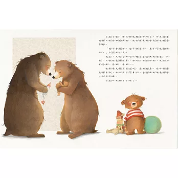 可是很快的,小熊發現事情不如想像中的美好,爸爸媽媽不再只是屬於他一個的,原本可以獨佔的擁抱也都變成小寶寶的,甚至爸爸媽媽為了小寶寶而不再有時間陪他玩遊戲。