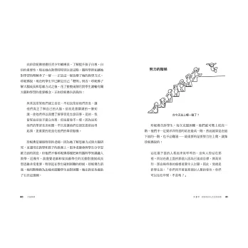 .作者從認知科學成果鑄造出的六把金鑰,有力的破解了學習數學時的迷思。其實大腦在克服困難與糾正錯誤中會持續發展,而那些降低學習數學障礙的方法,也適合用來處理生活上的難題。本書值得所有學生、老師、家長仔細閱讀。──李國偉,中央研究院數學所兼任研究員