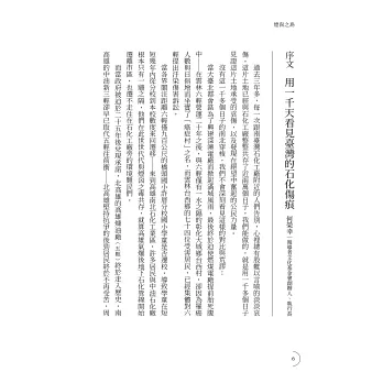 我們的日常生活仍舊充斥大量石化產品,石化地帶沒有隨著後勁五輕關廠縮小,而是繼續往南移動,遭八九一根煙囪包圍的大林蒲成為新一代煙囪之島的代表。本書企圖提問,石化汙染難道只能是大風吹的選擇題,還是應該改成是非題,成為可以兼顧人民健康、土地保育與經濟發展的產業?所有生活於臺灣土地的我們,都要共同面對與思考,石化業未來不必然是犧牲的體系,而是催生不斷前進的產業轉型、科學新標準與公民新力量。